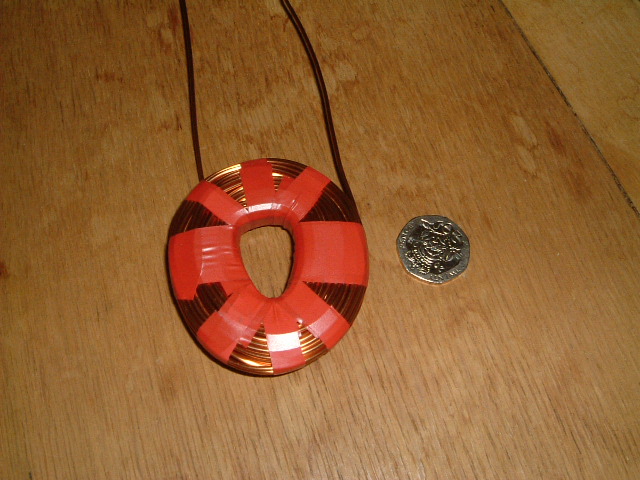 Coil Selection and Output Voltage EstimationAfter drawing diagrams of the rotor and stator, it became apparent I could use much larger coils in this design as there was much more room to play with. I was keen to build a 3 phase machine and set about seeing if that was possible. In order to achieve this, a multiple of 3 coils were required in total. Since the coil wire was much thicker than the previous design, this would limit the number of turns I could get for a large number of small coils. Based on the size of the magnets and the geometry of the disk, it looked like 9 coils was the best compromise. I had to modify my coil winder to accept these larger coils and when this was done, I cut out a paper template of a disk segment 1/9 of the disk area. It turned out that the coils could only have 85 turns before they became too large to fit in the space provided. Having created one test coil of 85 turns, it was time to break out the test harness to see what kind of voltage could be produced. The harness used a small 100mm disk and one of the new larger magnets with the test coil. I reasoned that as the magnet is turning on a smaller radius than the real machine, the magnet will be moving slower so if anything, will produce less voltage when testing than when mounted on the real disk. I believe the larger turbine will probably have larger blades and will rotate more slowly so I did my testing at 120 rpm this time. Results were: Voltage generated for one coil and one magnet = 100mv This was rather better than I was expecting and it could well be higher, this was an average value. From my earlier design, I can get a rough idea of the voltage generated per coil by multiplying up: Voltage per coil with 24 magnets (2 rotors) = 24 * 100mv = 2.4 volts (ac) If we went for a three phase design, we would have 3 coils in series per phase so: voltage per phase = 3 * 2.4 = 7.2v And if wired in 3 phase star, this will give the following voltage across phases: Voltage across phases (star) = 1.7 * 7.2 = 12.24 volts (ac)(where 1.7 is the square root of 3). Once rectified to dc, the voltage available will be: 12.34 * 1.414 - 1.4 = 16 Vdcwhere 1.414 = the square root of 2 and 1.4 = 2 diode drops in the rectifier. Which, if anything, is a touch on the high side, but the voltage will get pulled down as the load current increases. Based on these calculations, the turbine should start producing 12 volts (dc) output at about 90rpm. Well, that is what these rough calculations are predicting, reality may have something else in store. So, in theory, it looks possible to easily produce the required voltage at low RPMs with this design. How difficult it will be to turn the alternator will be a big factor and may require much larger blades (or more of them) to create the torque required. I can easily modify the mounting bracket on the blades I used for the 12 Watt design and use those as a starting point.